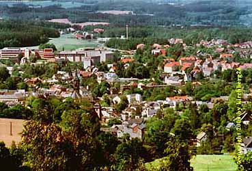 Vom Ortsteil Burkersdorf hat man eine schöne Aussicht auf die Stadt Kirchberg. Man sieht hier den Ort im Tal des Rödelbaches und die Kirche "St Margarethen".