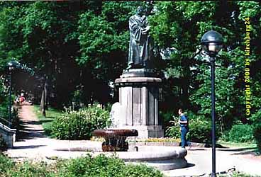 Nun befinden wir uns in der Parkanlage "Lutherplatz". Hier steht das Lutherdenkmal. Davor ist der Brunnen zu sehen.